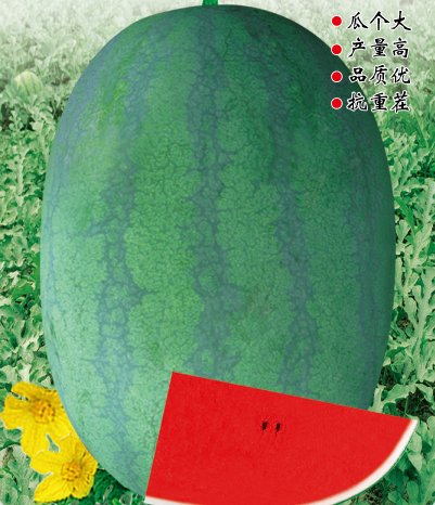 ■ 特征特性 :早中熟種,坐果至成熟28天左右,全生育期90天左右。植株長勢穩(wěn)健,抗病抗逆性強(qiáng),生態(tài)適應(yīng)性廣,易坐果。果實(shí)橢圓形,果皮墨綠色底上覆暗條帶,果面光滑無棱帶蠟粉。瓤色深紅,瓤質(zhì)酥脆,中心糖14%左右,口感好,風(fēng)味佳。平均單果重8-10kg左右,大者20kg以上(特殊栽培),一般畝產(chǎn)6000公斤以上。皮厚1.0cm左右,果皮硬度強(qiáng),耐儲(chǔ)運(yùn)。高抗枯萎病抗重茬,兼抗炭疽病和病毒病,在2年重茬地種植,其產(chǎn)量品質(zhì)無明顯差異。綜合性狀優(yōu)于目前抗病品種。