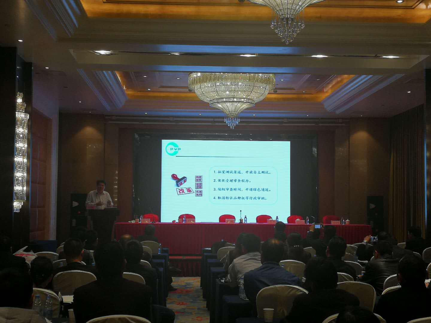 ? ?2018年4月8日下午,安徽省種子協會植物新品種保護分會成立大會在合肥舉行。農業農村部科技發展中心崔韓野處長,安徽省種子管理總站副站長汪社寬,安徽省種子協會植物新品種保護分會會長、荃銀高科張琴董事長以及來自全省各地120多位會員代表參加會議。