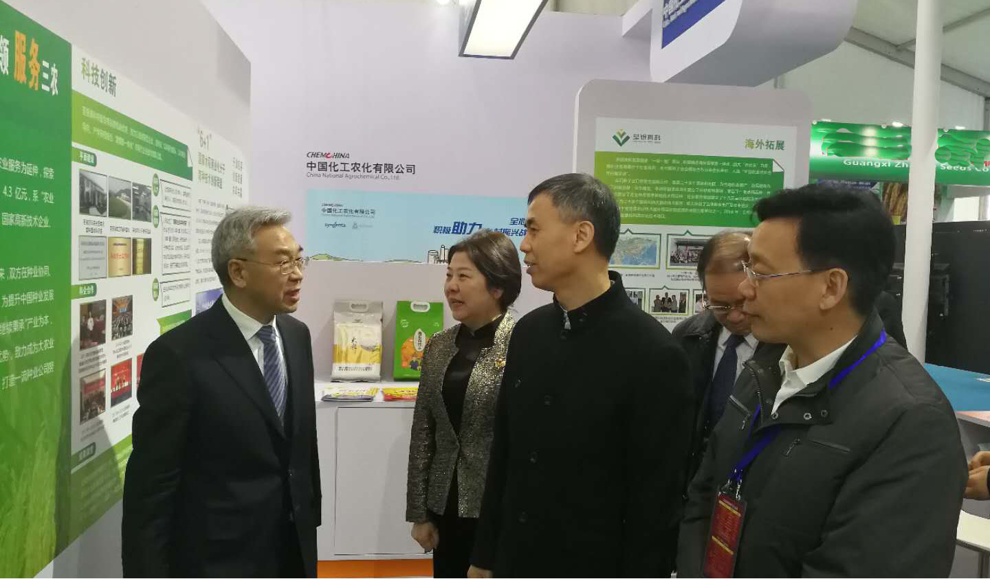 ??? 荃銀高科展廳重點從科技創新、科企合作、農業社會化服務、人才培養、產業體系及海外開拓、履行社會責任等方面展示企業風采,張桃林副部長給予肯定。