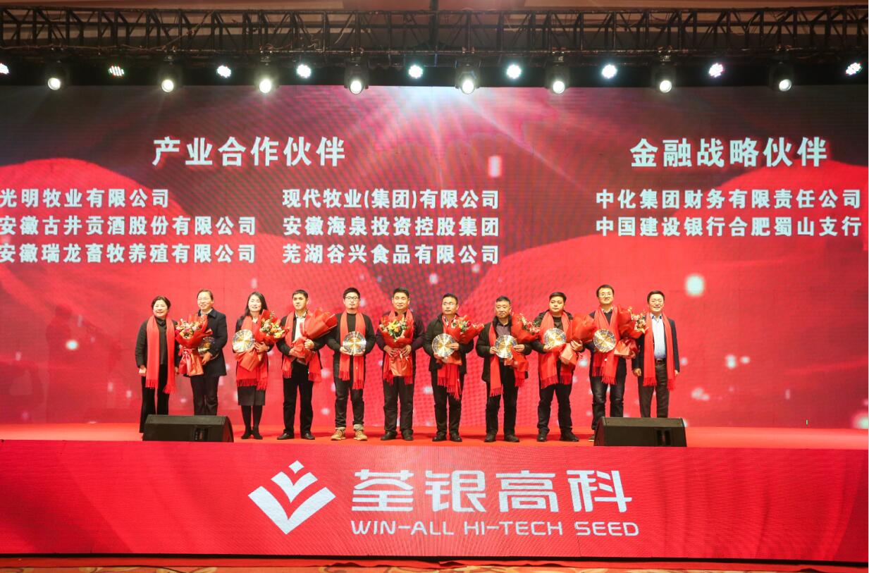 ? ? 創新合作,共贏發展。會上進行了荃銀高科產業合作伙伴、金融戰略伙伴頒獎儀式。近年來,荃銀高科積極開展農業生產社會化服務探索,不斷加強與產業伙伴、金融公司合作,構建“品種+品牌+資本”戰略發展之路,打造產業鏈,形成閉環,創新發展模式,為廣大農戶提供從種到收一條龍服務,推進一二三產業融合,為現代農業提供整體解決方案。